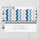 Bridal Shower invitations in elegant dark navy blue, grey and white retro and casual chevron zigzags stripes pattern, chic and feminine, customisable with your shower details. Also available in thank you cards and invitations for the bridal party.