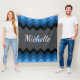 Dark Blue Ombre Chevrons Monogram Fleece Blanket