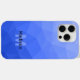 Dark blue geometric mesh pattern Monogram iPhone 15 Case. Personalise with your custom initial and name. Triangle geometric mesh with light to dark blue ombre gradient.