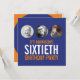 Navy blue and contrasting bright orange and white double-sided 60th birthday invitation. Graphic invitation customise with your own details and three photos of your birthday girl or boy. Unique design by Sarah Trett for www.mylittleeden.com