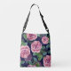 Dark Blue, Pink Roses Watercolor. Crossbody Bag