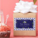 Make a lasting impression with this modern and elegant product label design featuring a pretty frame with blue roses and green rose leaves on a dark blue background.