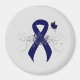 Dark blue ribbon with a butterfly, circles, and swirls. The dark blue / navy ribbon stands for Ankylosing Spondylitis Awareness, Apraxia Awareness, ARDS (Acute Respiratory Distress Syndrome) Awareness, Brahcial Plexus Injuries, Crime Victim's Rights Awareness, Dysautonomia Awareness, Education Awareness, Epstein-Barr Virus Awareness, Erb's Palsy Awareness, Familial Polyposis Awareness, Free Speech Awareness, Hurricane Awareness, Hurricane Katrina Awareness, Ichthyosis Awareness, Langerhans Cell Hystiocytosis, Police Lost in Duty Awareness, Restless Legs Syndrome, Save The Music Awareness, Teens Against Smoking Awareness, Transverse Myelitis Awareness, Water Accidents Awareness, Water Quality Awareness, and Water Safety Awareness. And also March is Chronic Fatigue Syndrome Awareness, Colon Cancer Awareness, Colourectal Cancer Awareness, Rectal Cancer Awareness, and Short Bowel Syndrome Awareness Month. April is Child Abuse Prevention Awareness Month. May is Arthritis Awareness, Colitis Awareness, Crohn's Disease Awareness, Guillian Barre Syndrome Awareness, Huntington's Disease Awareness, and ME / CFIDS Awareness Month. August is Drowning Awareness, and Steven Johnson Syndrome Awareness Month. September is Alopecia Awareness, Dystonia Awareness, Hystiocytosis Awareness, Leukodystrophies Awareness, Myositis Awareness, and Reye's Syndrome Awareness Month. October is Interstitial Cystitis Awareness, and Victim's Rights Awareness Month.