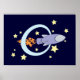 Dark Blue Rocket Kids Retro Space Poster
