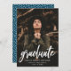 Simple graduation announcement featuring the graduate's photo with "graduate" in a trendy white script font. Personalize the front of the photo graduation announcement by adding the graduate's name, school name, and graduation year. The announcement reverses to display a pattern of white sprinkles with a dark blue background or color of your choice.