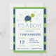 Dark Blue Stripe Turtle Baby Shower Invitation