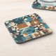 Dark Blue, Teal, Brown, and Tan Geometric Pattern Coaster