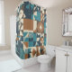 Dark Blue, Teal, Brown, and Tan Geometric Pattern Shower Curtain