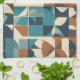 Dark Blue, Teal, Brown, and Tan Geometric Pattern Tea Towel