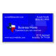 The magnetic business card has the Texas map shaped like the State of Texas on a dark blue background
