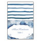 This design is sold as a 3.5x5 inches flat card that you will need to fold (or score and fold) in half yourself to make individual place cards or buffet cards with a folded size of 3.5x2.5 inches. This classic design features inky blue watercolor shapes with white nautical or sea motifs eg Compass Rose, starfish, shell.