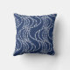 Throw pillow with a Japanese stylised wave design in Dark Blue. Handmade in the USA.