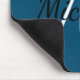 Mouse pad with a deep blue background and white custom monogram first initial and first name