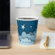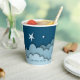 Cute and fun paper cups for your upcoming boy baby shower. The illustration has some blue clouds over a dark blue sky, blue stars and a soft yellow moon. Personalise the text with your own. The illustration has a 3d effect showing some clouds over a dark blue background with light blue stars. The effect is simulated, it's a print. Personalise all the text with your own. Illustrated and designed by Patricia Alvarez.