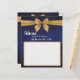 Stunning dark blue background tied with a gold bow image. Stationery is all printed, no actual ribbon. Personalise our gorgeous stationery with your event details easily and quickly, simply press the customise it button. Coordinating backside is included. Matching items to complete your event collection are available in our Zazzle store!
