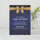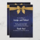Stunning dark blue background tied with a gold bow image. Stationery is all printed, no actual ribbon. Personalise our gorgeous stationery with your event details easily and quickly, simply press the customise it button. Coordinating backside is included. Matching items to complete your event collection are available in our Zazzle store!