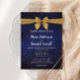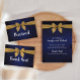Stunning dark blue background tied with a gold bow image. Stationery is all printed, no actual ribbon. Personalise our gorgeous stationery with your event details easily and quickly, simply press the customise it button. Coordinating backside is included. Matching items to complete your event collection are available in our Zazzle store!