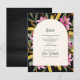 Share your important wedding information in refined botanical style with this dark blush pink lily arched wedding details card. Featuring vibrant watercolor lilies, golden yellow blooms, and lush greenery set against a dramatic black background, this design highlights a modern curved arch layout for a sophisticated and elevated presentation.