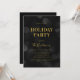 Chic holiday party invitation featuring the words "Holiday Party" in faux gold foil against a dark bokeh lights pattern background that's perfect for a holiday party for family or friends or even a corporate business holiday party. Invitation has a dark grey background back side.