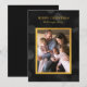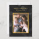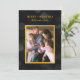 This photo holiday card features your photo and the words "Merry Christmas" in faux gold foil against a dark bokeh lights pattern background. Card has a dark grey background back side.
