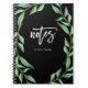 This elegant, dramatic notebook features watercolor green botanical leaves on a black background, with trendy white typography.