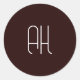 Dark brown and white custom initials simple classic round sticker