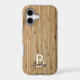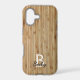 Dark brown bamboo wood print for your mobile phone. Combined with a white monogram/initials and your name in black. Alternatively, you can omit the text and have the pure wood like design.