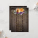 This is a beautiful rustic wedding invitation with a dark brown barnboard, a few sets of sparkly string lights and a watercolor Sunflower Bouquet.