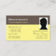 YOUR FAVORITE -Make a lasting impression with this elegant and simple dark brown and light yellow coloured business card design with (employees-) photo.