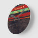 Dark brown with red, green, yellow tracers round clock
