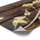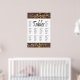 Background image of dark brown wood. Keep track of table assignments--insert names by table, or alphabetically. Room for 100 names. Use "customise" option if you need to change spacing. NOTE: When you insert your names, they will not line up evenly (because of differences in name length). To align them, click the customise button. You will see a list on the right. Hold down the ctrl key while clicking each name in the group you wish to align. Once they are all selected, click Arrange. Then click Align Selected. Then choose the image labelled "left." This will give your selected group a straight left-side alignment. While the names are still selected, you can then drag and drop the box on the design page if you want to move the whole block of names.