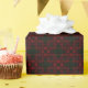 Make a sophisticated and moody statement with this striking gift wrap. The pattern is an intricate hybrid, combining the texture of a classic plaid with a repeating geometric design of tiny star or diamond shapes. It is rendered in a dramatic palette of very dark charcoal or black and rich, deep maroon or ruby red. This luxurious, dark pattern is perfect for non-traditional holiday gifts, formal winter birthdays, or any present requiring a bold and elegant presentation.