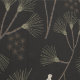 Dark Charcoal Bird & Pine Tree Pattern – Japandi Wallpaper