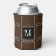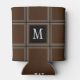 Dark Chocolate Brown Custom Single Initial Striped Can Cooler