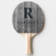 Dark Clean Gray Wood Family Name & Initial Ping Pong Paddle