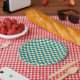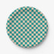 Dark Cyan and Soft Peach Chequerboard Paper Plate