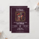 At the heart of the invitation, a captivating graphic takes centre stage. The focal point is a beautifully detailed, Dia de los Muertos-inspired skeleton couple, elegantly adorned in traditional Mexican calavera attire. The skeleton bride and groom are portrayed with intricate sugar skull makeup, embellished with vibrant colours, ornate patterns, and delicate floral motifs. Their eye sockets are adorned with artistic designs, and their smiles are warm and inviting, despite their skeletal appearance.