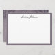 Our chic personalised stationery flat cards feature a dark eggplant border with your name or monogram on the top in script lettering. Reverse side reveals a modern dark eggplant damask print.