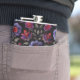 Dark Elegance: Black and Purple Floral Pattern Hip Flask