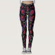 Dark Elegance: Black and Purple Floral Pattern Leggings