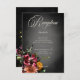Step into a realm of exquisite elegance with our floral dark and moody wedding reception enclosure card. Designed to captivate the senses, this design boasts a striking black background adorned with a breathtaking burst of autumnal florals in deep burgundy, burnt orange, creamy hues, and touches of luxurious gold, complemented by lush olive green foliage. The creamy text floats on a soft oval blur, adding a touch of romance to the overall allure. Embrace the opulence of the season and set the tone for your special day with this stunning design, sure to leave a lasting impression on your guests. Created by Simply Farmhouse Press.