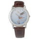 The watch looks really great!  Very sharp and well done. The leather band is really nice, though for a man's watch I think it should be longer. Unfortunately, it isn't big enough for my husband's wrist but I will get a replacement because he is very excited to wear it!