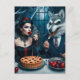 AI generated art of beautiful grown up Snow eating cherry pie with the wolf in a fairytale collision where Vintage fairytales collide