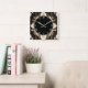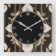 "floral art deco clock", "flower art nouveau clock", "black white cream gold", "1920s geometric symmetrical lines", "stylish sophisticated 1920 style", "smart faux golden luxury", "retro vintage luxurious antique", "elegant line botanical", "glamourous glam square clock", "classy classic flowers glamour"