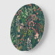 Dense arrangement of botanical elements on a dark background. Vintage textile pattern.
