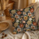 Dark Floral Fall Blooms Throw Pillow