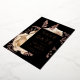 This elegant, moody wedding Save the Date card features a lush, romantic floral bouquet in ivory with rose gold faux foil and glitter foliage on a black background. Customise the real rose gold foil text in stylish fonts on a black rectangle, and add your wedding website URL to the solid black back.