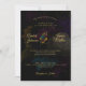 Dark Floral Moody Monogram Wedding Invitation. Part of The Amber Wedding Invitation Suite Collection. Dark Moody Florals and Monograms. Gold coloured Text is fully customisable. Illuminated Flowers. Dark black background with faded flowers.