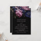 Dusty pink an purple flowers on a black background. With a photo and a scannable qr code for your wedding website on the backside.