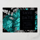 Dark Floral Teal Blue Silver Wedding Save the Date